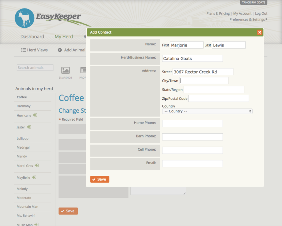 When adding your American Dairy Goat Association and American Goat Society registered animals using the Community Data lookup function, EasyKeeper may be able to prefill much of this information for you, helping to ensure your records are as accurate as possible.
